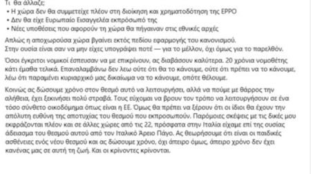 Από το πρωί σε όλα τα κανάλια ακούω τους δημοσιογράφους να ρωτούν συναδέλφους μου βουλευτές της Νέας Δημοκρατίας, εάν συμφωνούν με την «επίθεση» μου στον θεσμό της Ευρωπαϊκής Εισαγγελίας κλπ για να τους βγάλω όλους από την δύσκολη θέση έγραψα μόλις στην σελίδα μου στο Facebook…