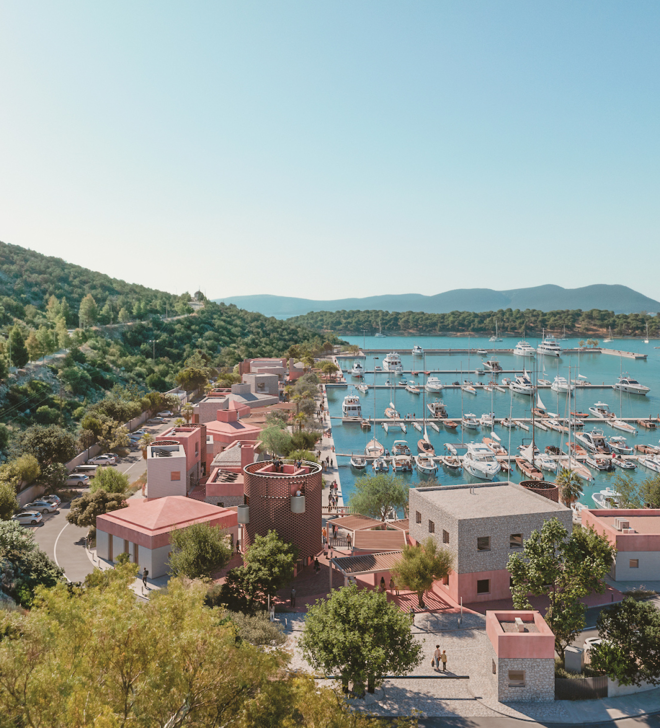 The flagship “Serenity Village” (Hydra Rock) covers 1,750 hectares, featuring a five-star resort, spa, tourer villas, and a structured vacation village. The plan emphasizes sustainability, including renewable vigor use, desalination, bioclimatic architecture, and preservation of olive groves.